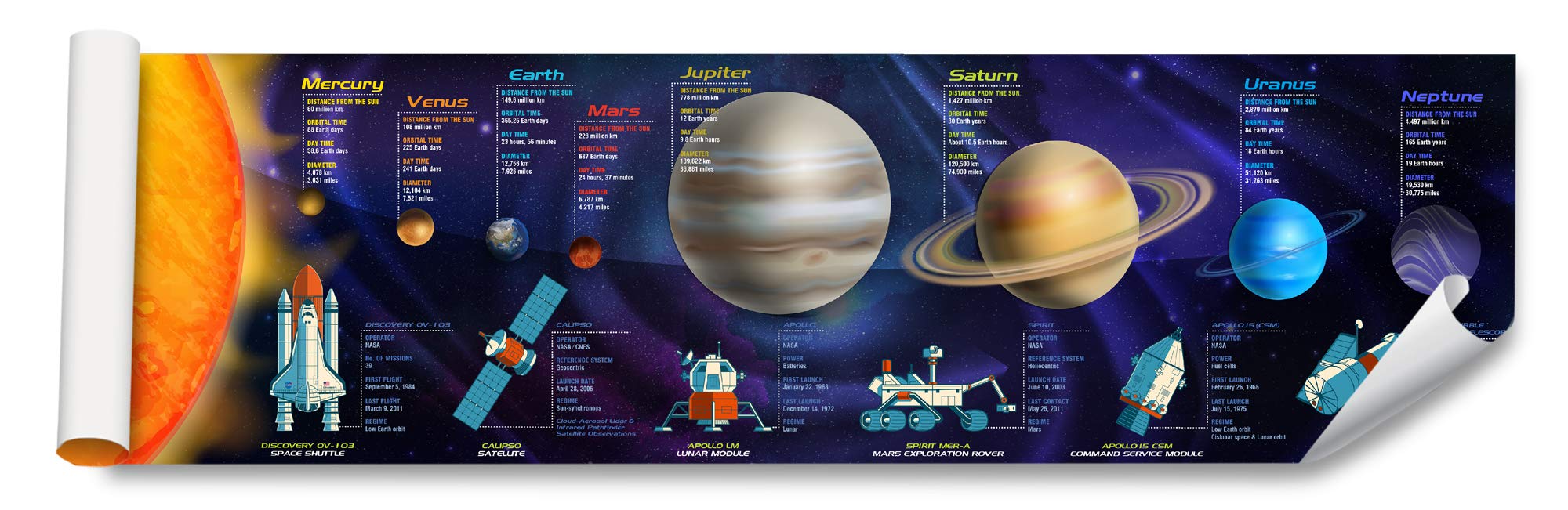 - INCLUDES SPACE POSTER: In addition to the cool Space Shuttle Puzzle, this set comes with a poster of the solar system. It includes all the planets and sun with neat little facts about each one. It even includes different satellites and other man made space machines.