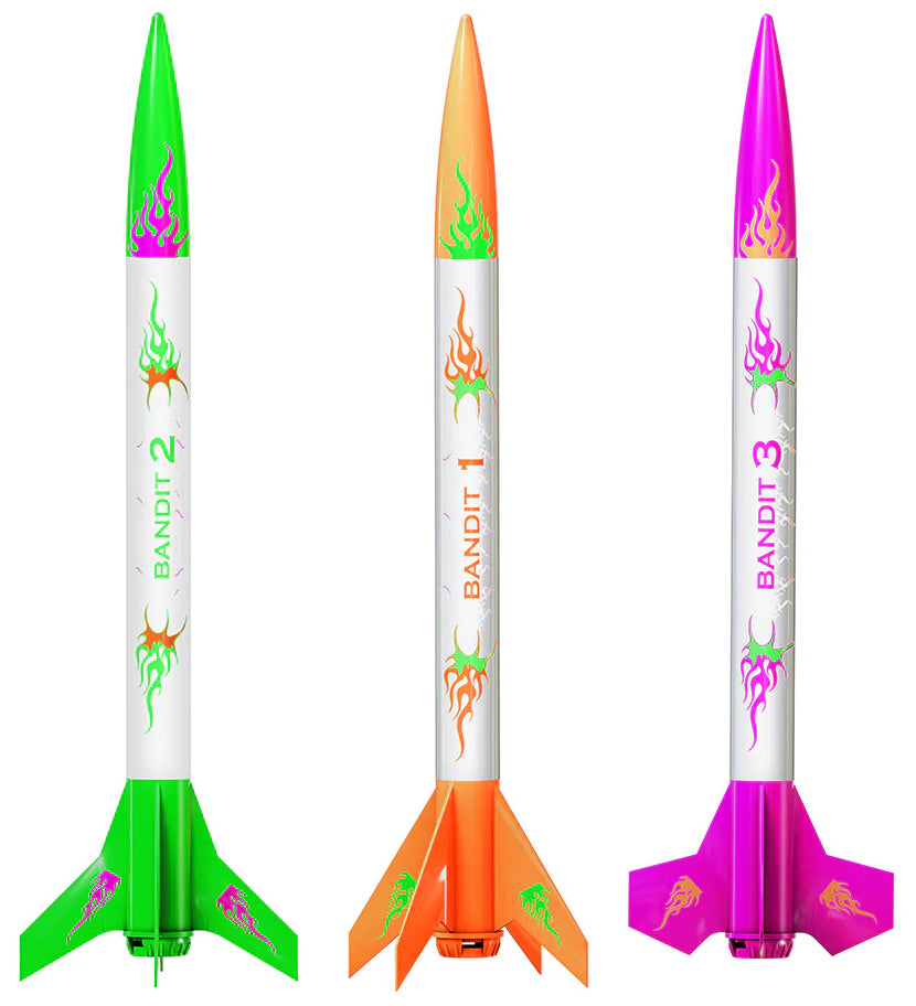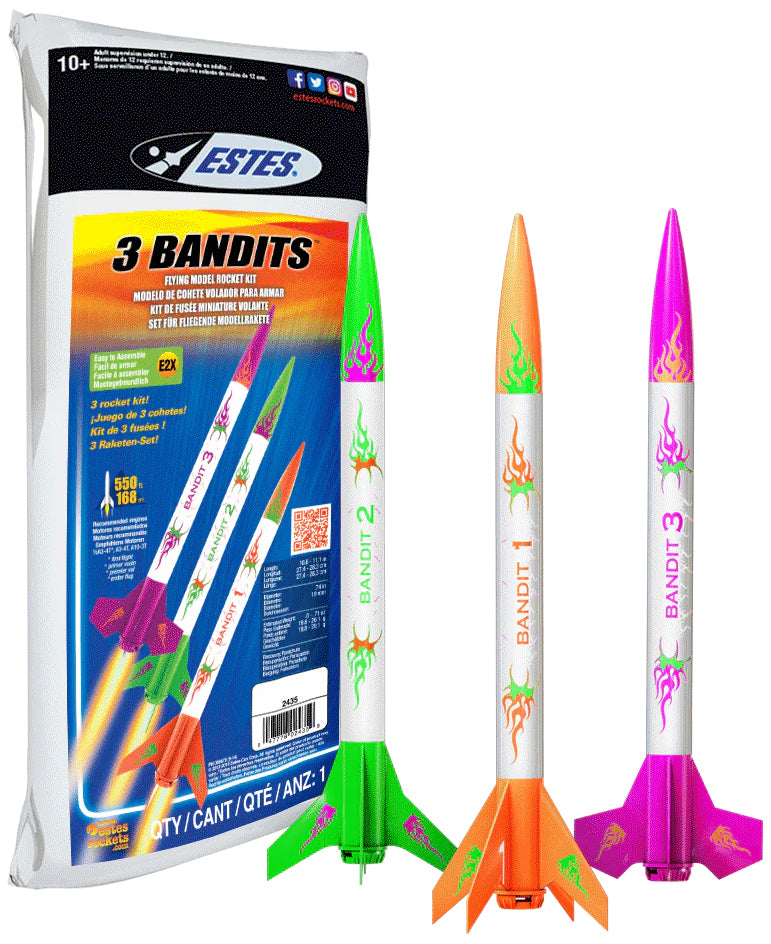 3 Bandits Model Rockets might be small, but they pack a powerful punch and are sure to provide a day of excitement and fun for the whole family. Don't let these bandits get away, grab them now and join the heist in the clouds!