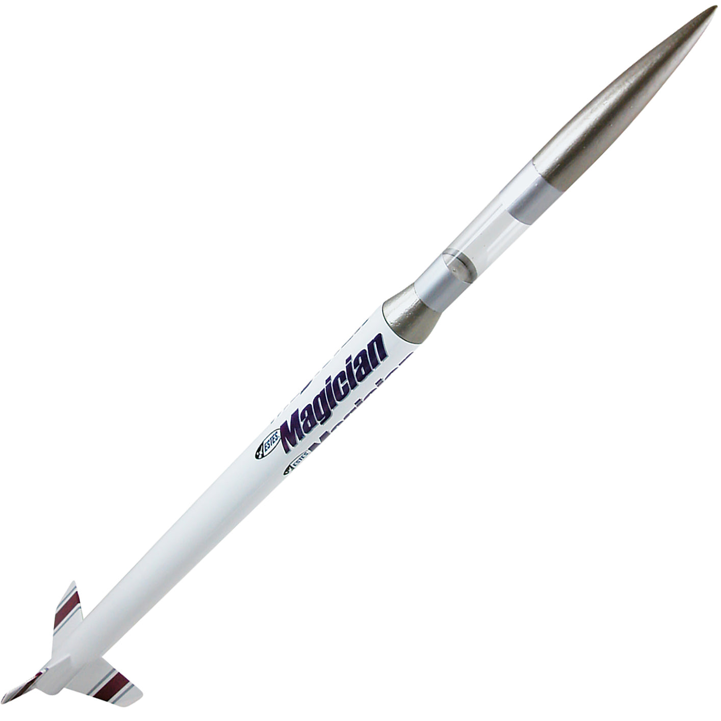 Estes Magician Model Rocket Kit The super talented rocket scientists really cooked up some "magic" with this one! Standing an impressive 33.5 inches tall, the Magician can reach soaring heights of 1600 feet when flown on Estes D and E Engines. The clear payload section is just an added bonus!