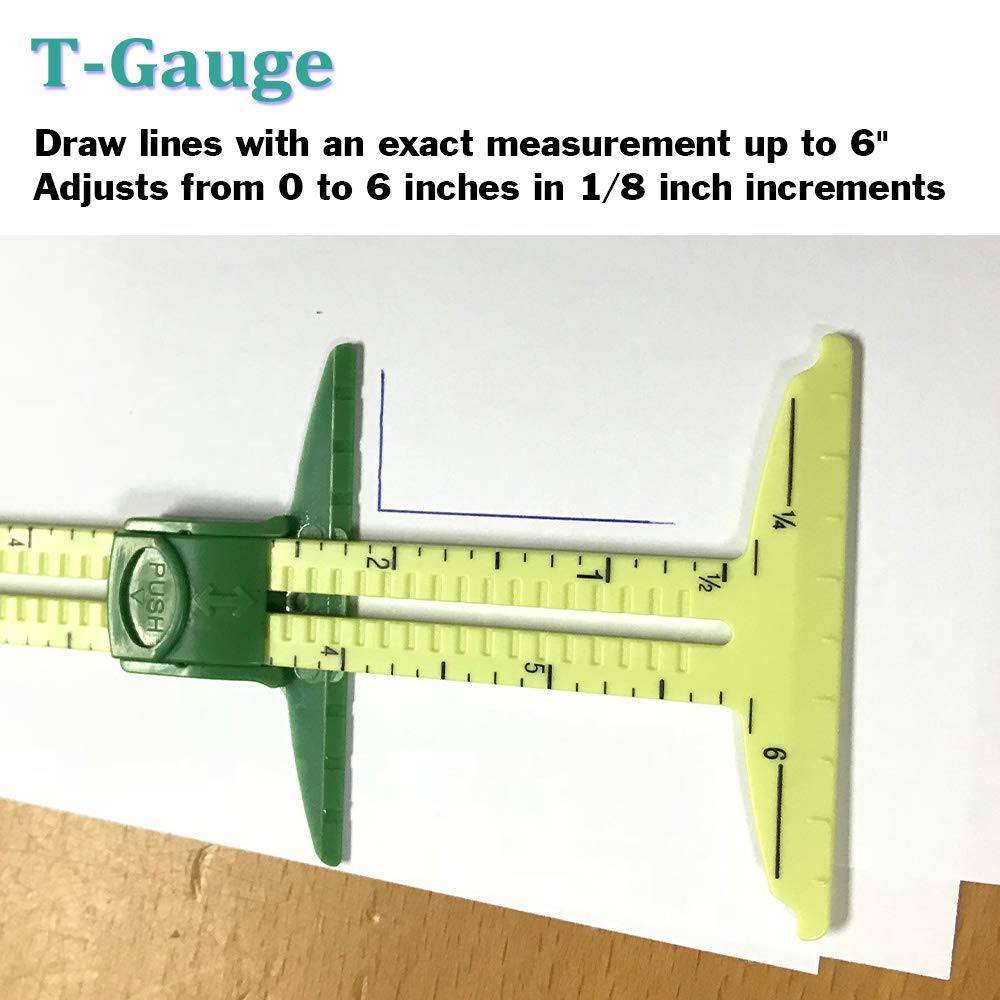 - T-Gauge - Draw a line with an exact measurement up to 6". Adjusts from 0 to 6 inches in 1/8 inch increments.