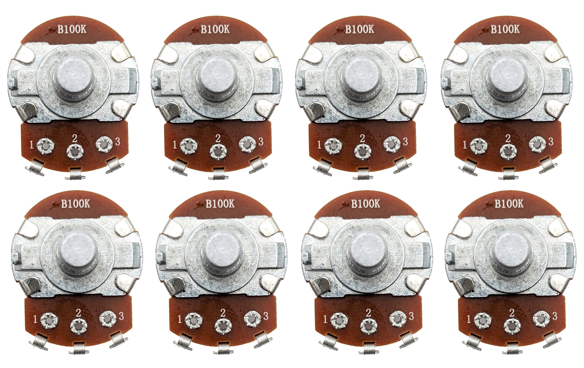 8 Pack 100K Ohm Potentiometer, 1/2W, Panel Mount, Single Turn, Round Shaft