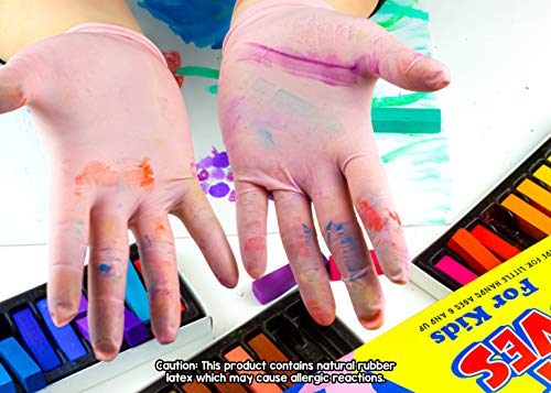 - LESS STRESS WITH NO MESS - Keep the stress out of the mess & protect your hands in style! These natural latex, disposable craft gloves come with 100 gloves in a pack & feature 5 inviting colors - pink, orange, blue, green & purple.