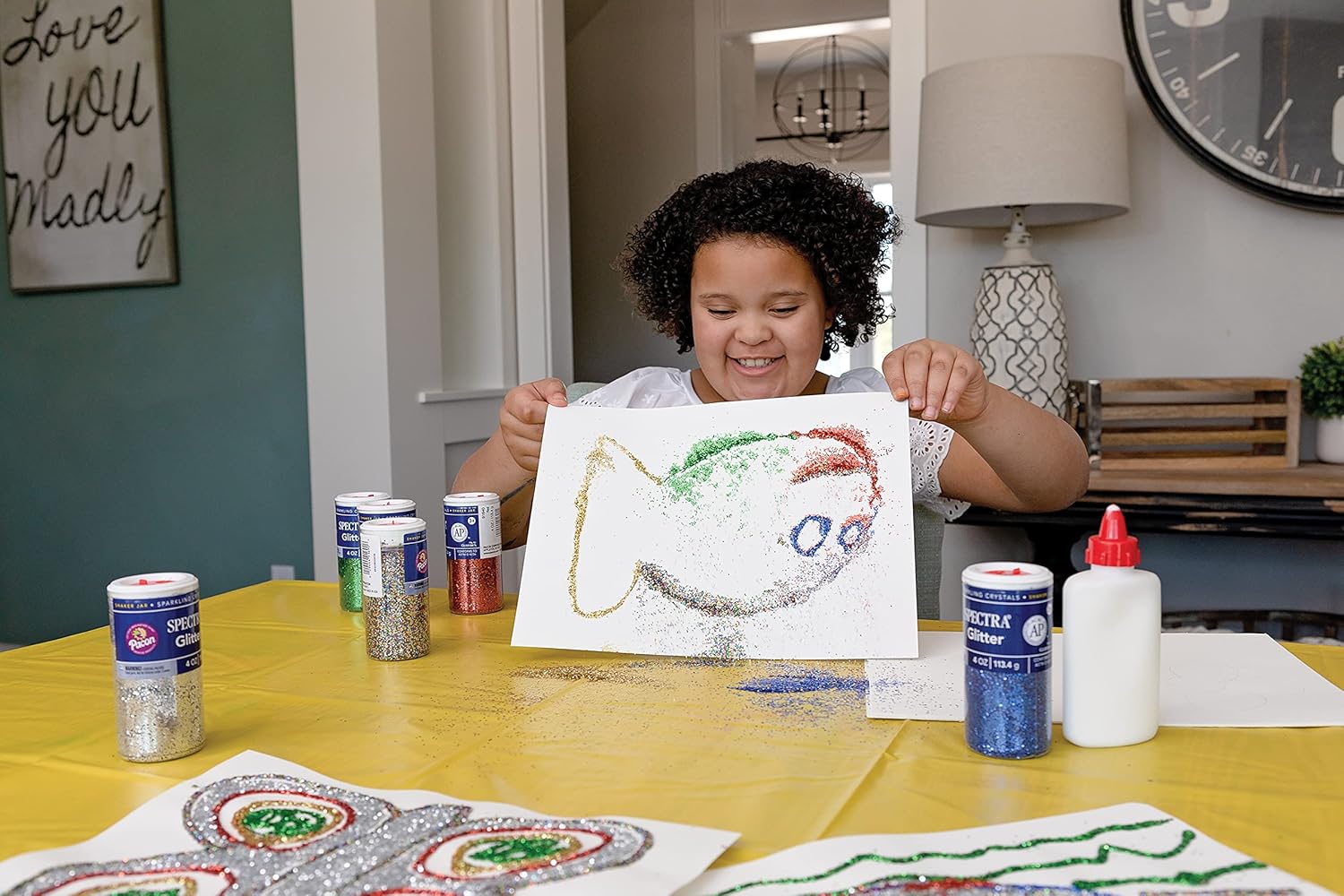 Pacon Spectra Glitter Sparkling Crystals will bring some sparkle and shine to any project. The hexagon-shaped plastic glitter crystals are non-toxic and conform to ASTM D-4236. The glitter comes conveniently packaged in a plastic dispensing jar with a variety of slot openings so it’s easy to use this glitter without making a mess. This 4-ounce jar of Pacon Spectra Glitter Sparkling Crystals features a mix of different colors. Pacon Spectra Glitter allows you to let your imagination shine!