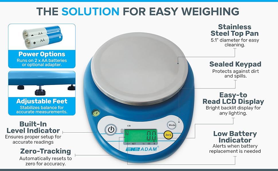 CB compact balances can manage most small tasks, such as measuring compounds in chemistry classes, portioning at food service establishments, or weighing small animals.