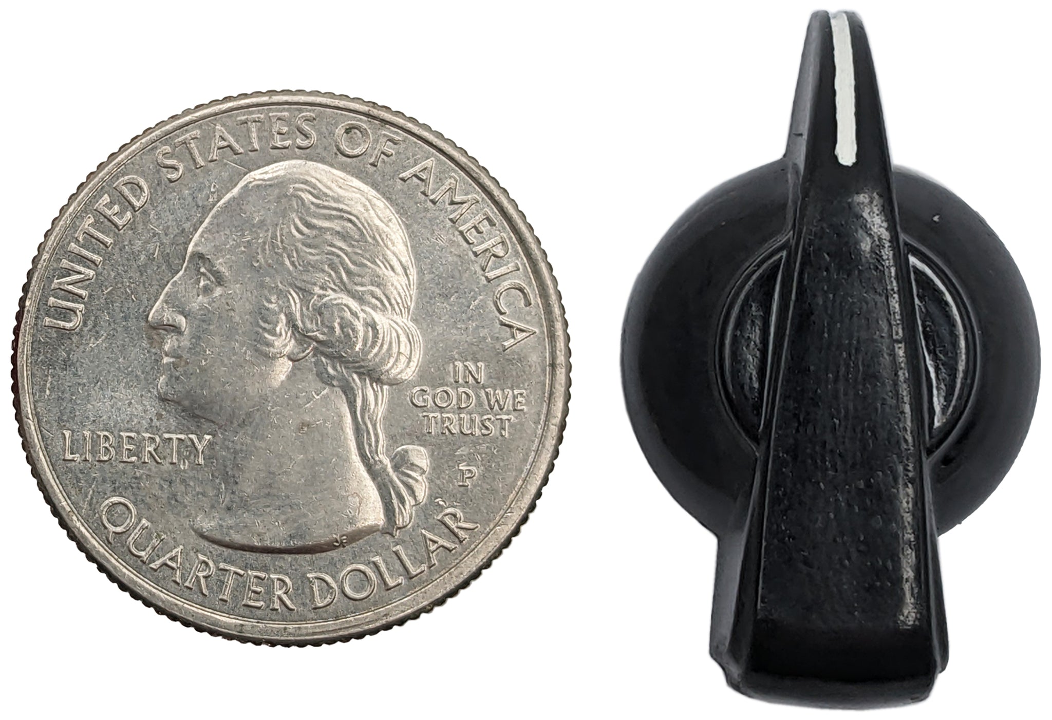 Black pointer (chicken head) knob with infilled white indicator line