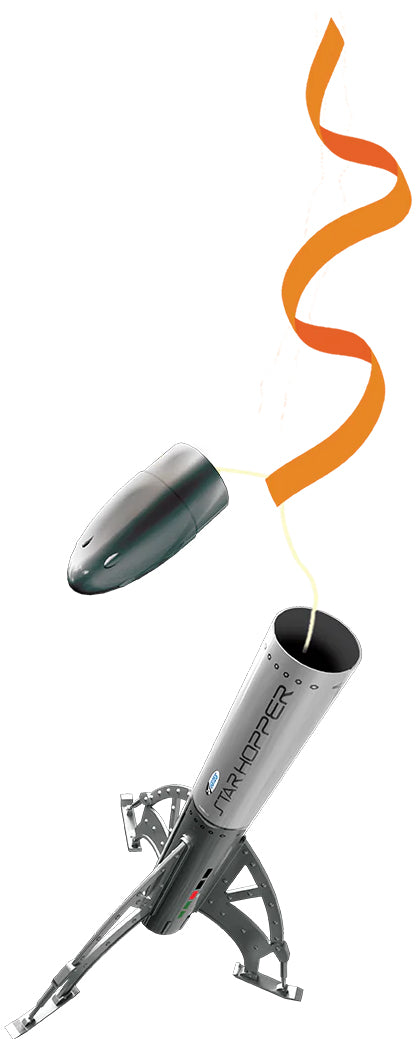 - Streamer Recovery System: Safety and ease of use are paramount with the Star Hopper Launch Set. The rocket is equipped with a reliable streamer recovery system, ensuring a safe descent back to Earth after each launch. Say goodbye to lengthy retrieval missions and hello to more time spent launching rockets!