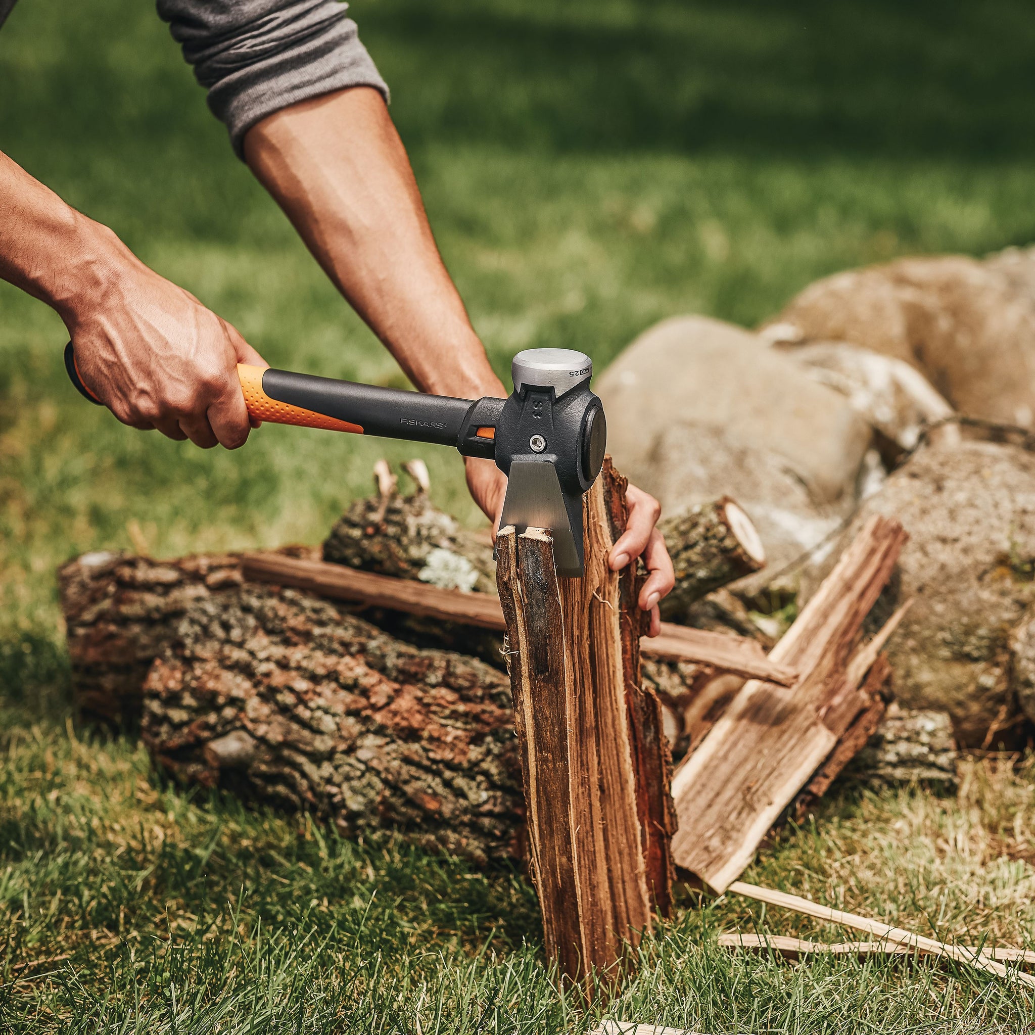 - Fiskars® Pro IsoCore® 2.5 lb. Maul transfers 2X less shock and vibration than wood-handled mauls, reducing punishment on your body