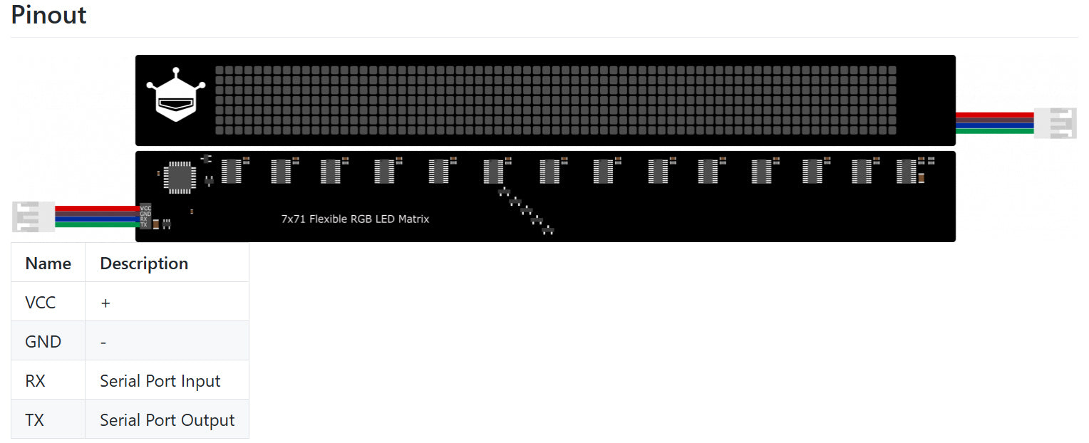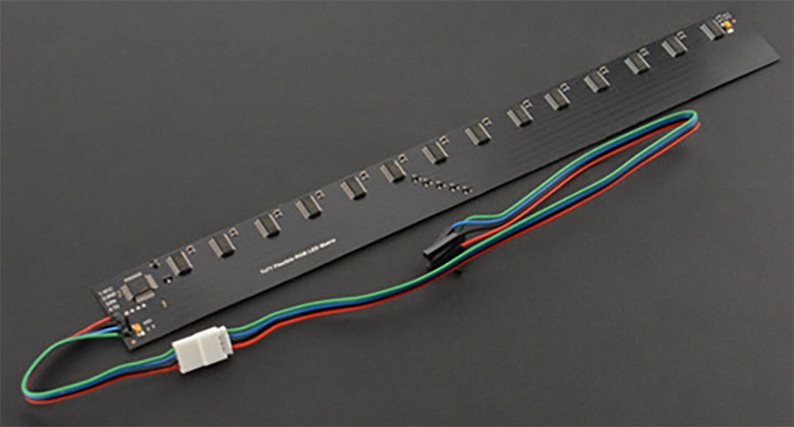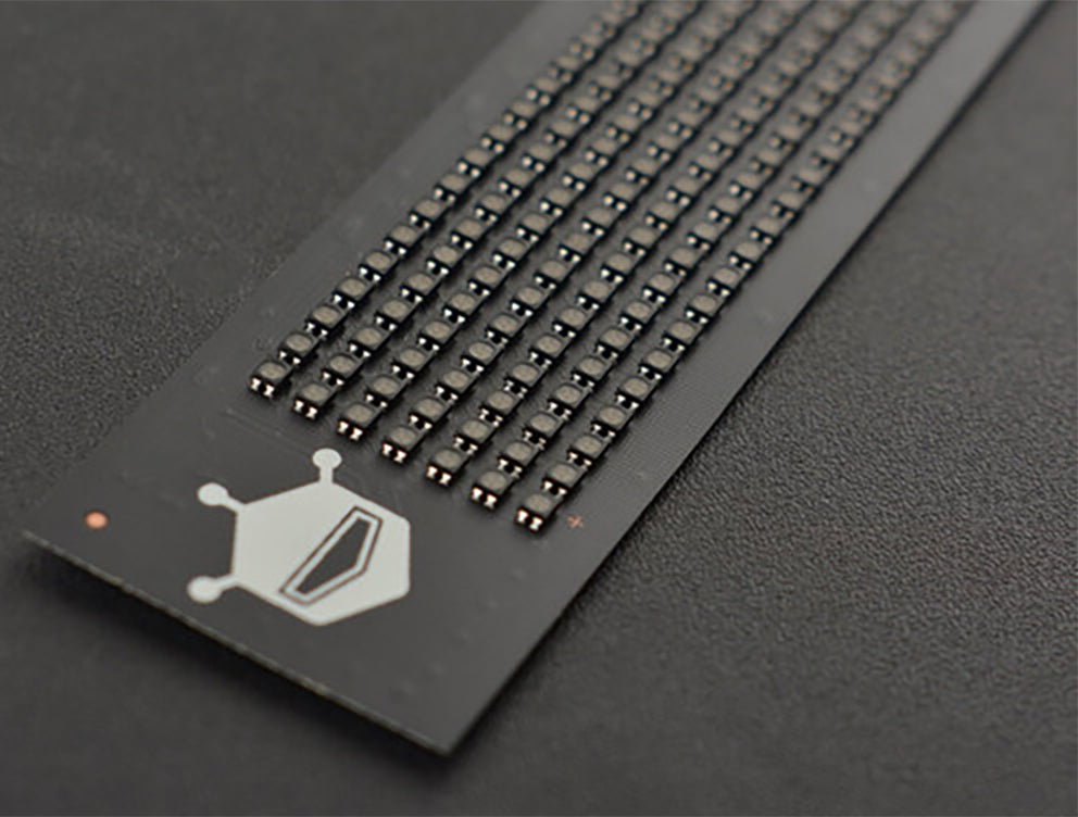 This flexible RGB LED matrix display has 7x71 RGB LEDs. Designed with flexible PCB board, it is light and bendable. The onboard MCU simplifies the way to display numbers and alphabets. It can keep display status even separated from the main control. So that it can be conveniently integrated into projects, especially wearable devices, such as hats, backpacks, clothes, skirts, shoes, belts, masks, etc. For items, it can be used for wallets, musical instruments, cups, vases, clock ornaments, etc. And it also is used in advertising walls, displays, and holiday decorations. Please kindly note that the flexible RGB LED matrix display should not be over-curved (no more than 30°) and bent repeatedly, so is prone to damage.