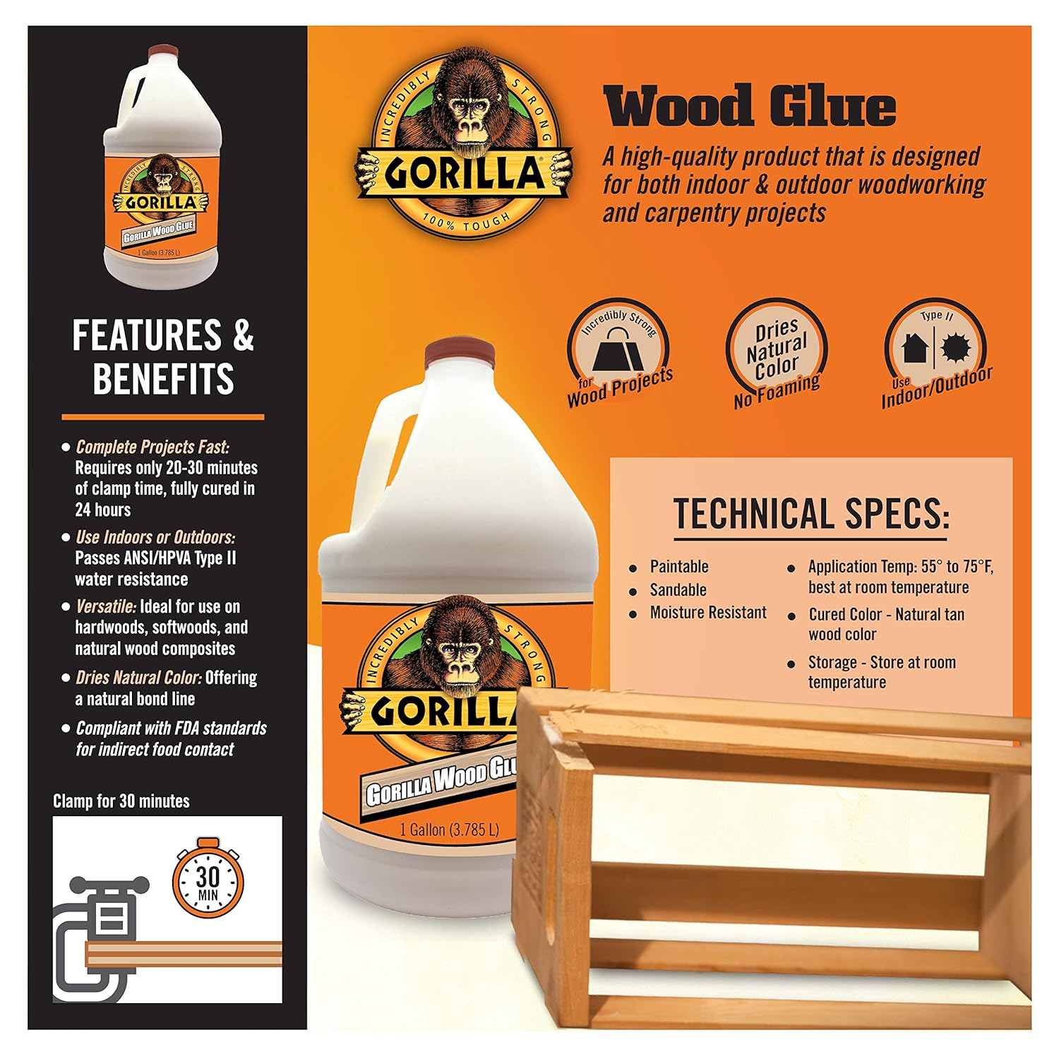 Gorilla Wood Glue, a PVA glue, offers the benefits of an easy-to use, water-based adhesive, with Gorilla strength. It is incredibly water resistant and versatile, making it great for both indoor and outdoor wood working projects.