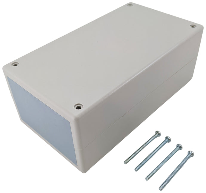 Made of durable ABS Plastic, this project box is an ideal enclosure for your custom electronic projects. Each end has a removable slat to allow one or both sides to be open if needed. Complete with 4 screws and lid.