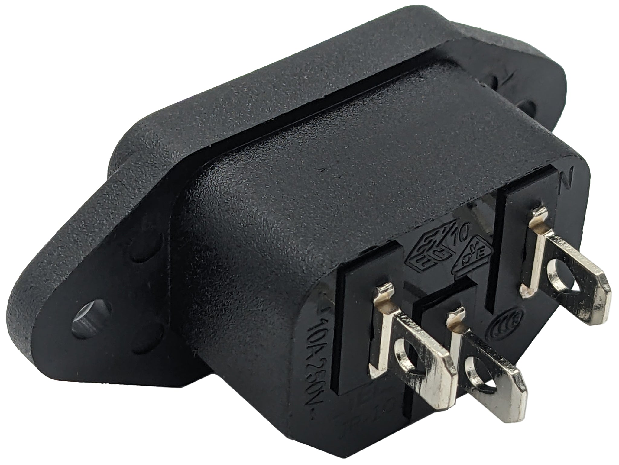 IEC Power Connector, IEC C14 Inlet, 10A, 250 VAC, Quick Connect, Snap-In, Flange Mount