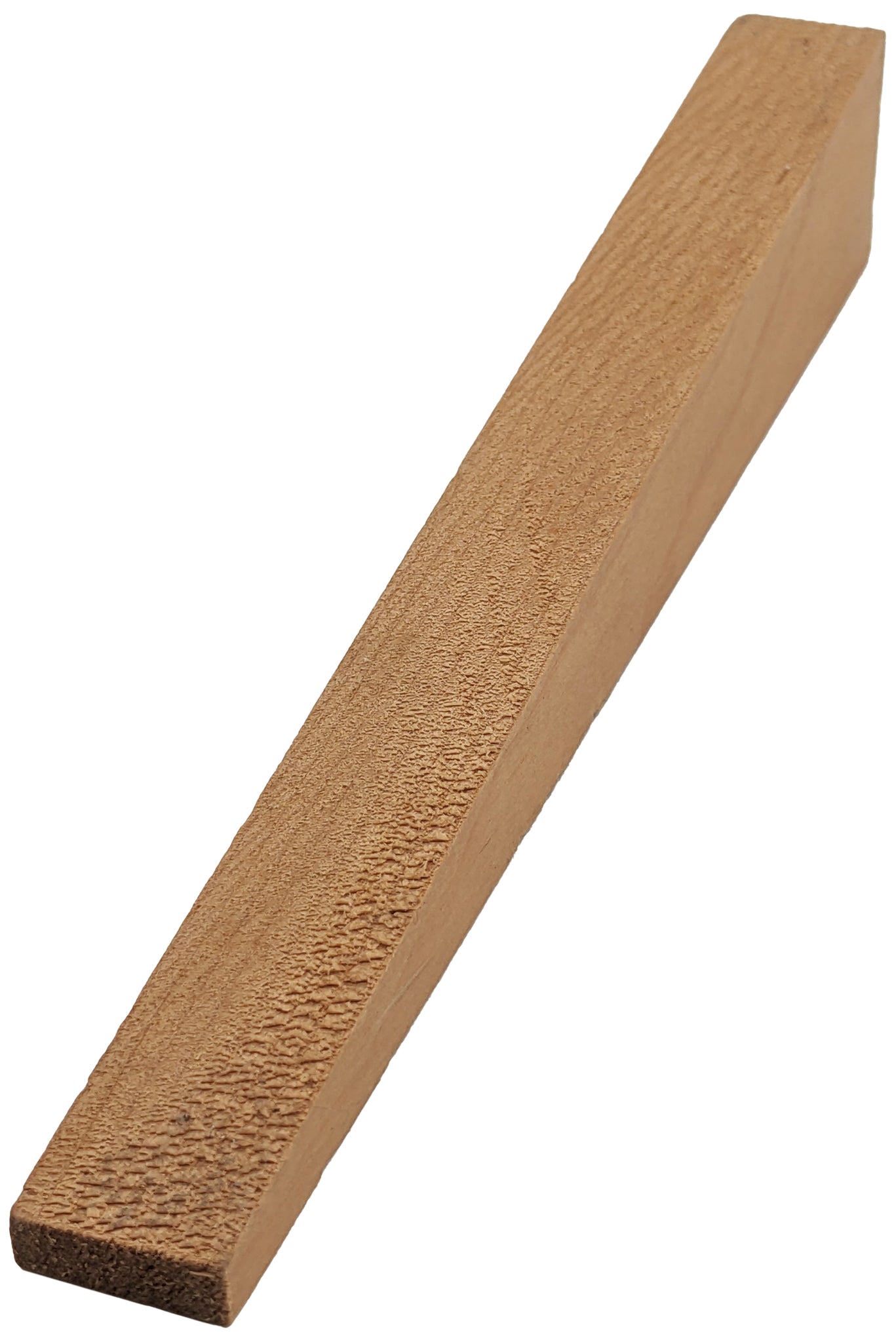 Wood blank measures 0.75 in. W x 0.25 in. H (front) x 1.25 in. H (rear) x 7.5 in. L