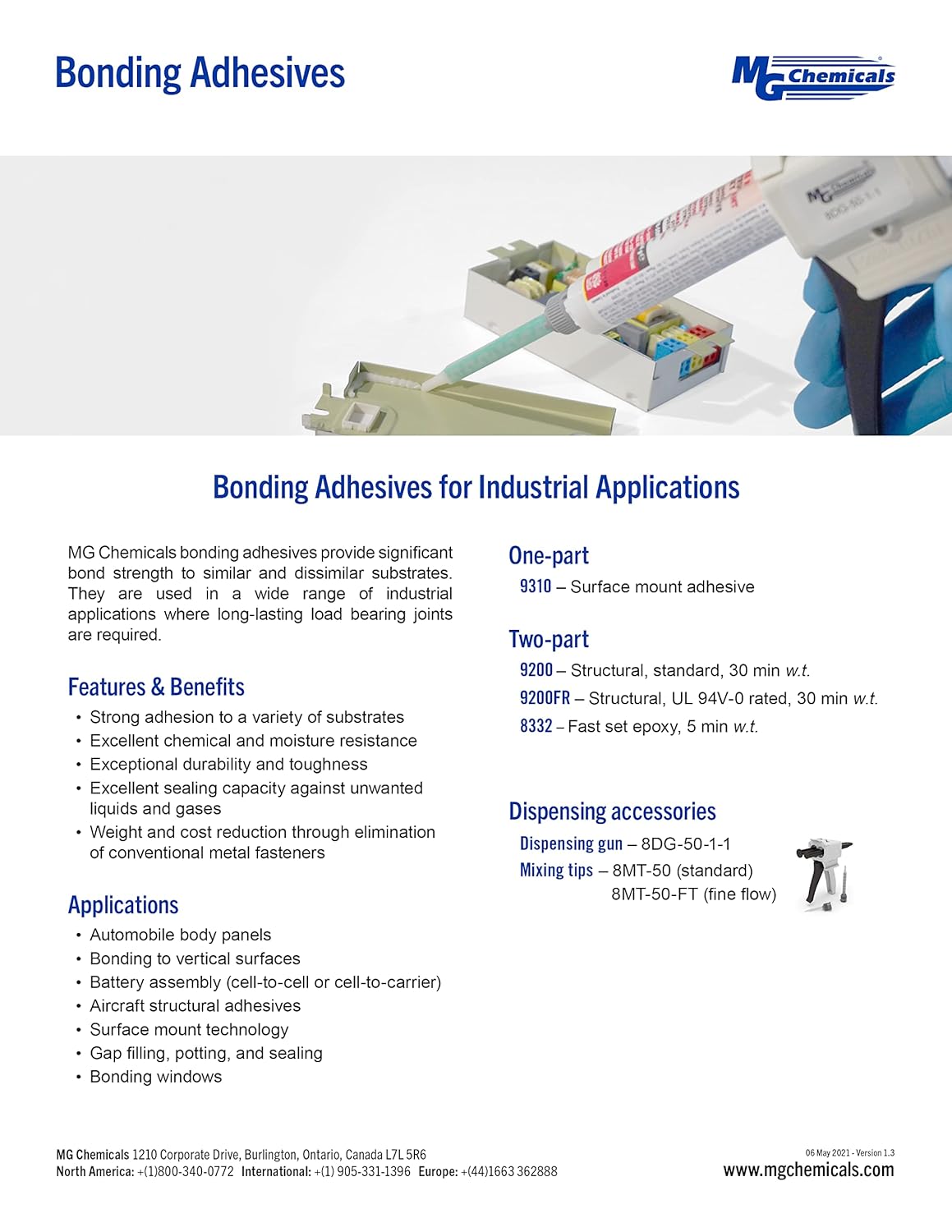 For standard adhesives, use 9200 and 9200FR. For a 1-part adhesive, use 9310. We also offer electrically conductive and thermally conductive adhesives.
