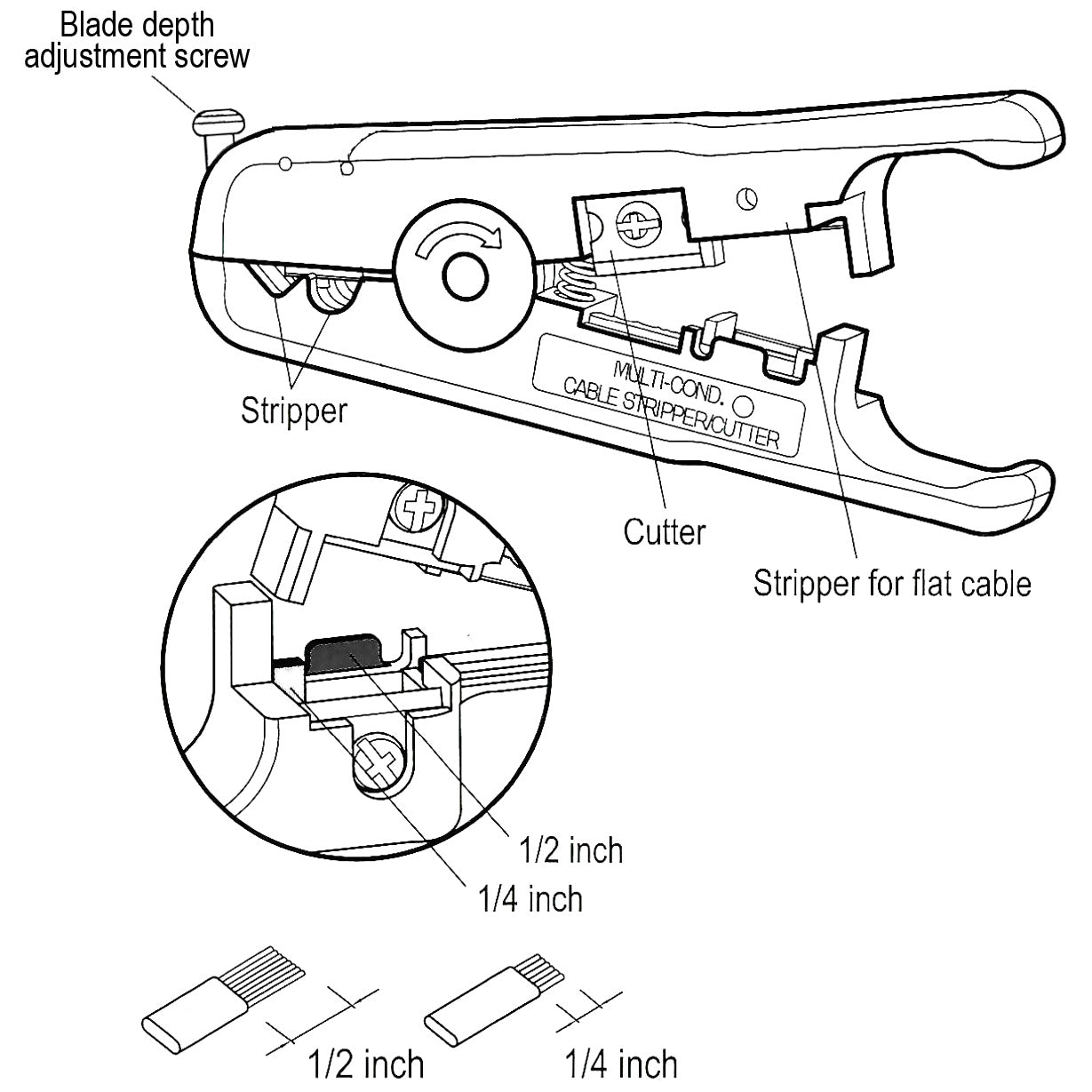 - Flat cable 1/2” & 1/4” stripping guide without pre-measuring needed
