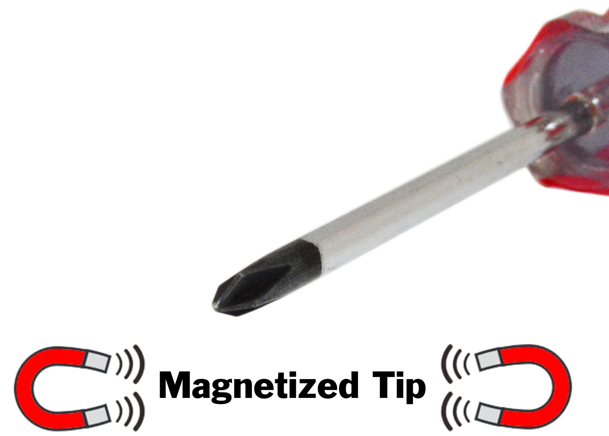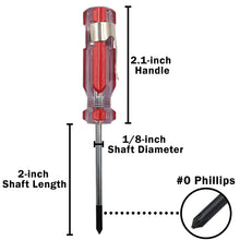 Mini #0 Phillips Pocket-Clip Screwdriver with 2" Shaft, Magnetized Tip, 4" Overall Length