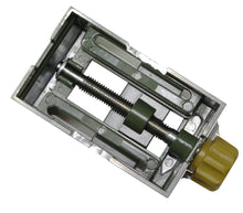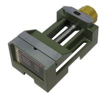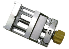 Die-cast zinc. With three machined sides. The slot fits the adjustable fence of the drill stand MB 200 and the bench drill press TBM 115. Horizontal and vertical V-slots in jaw. Jaw width 2" (50mm) and height 2/5" (10mm). Maximum clamping width 1 11/32" (34mm).