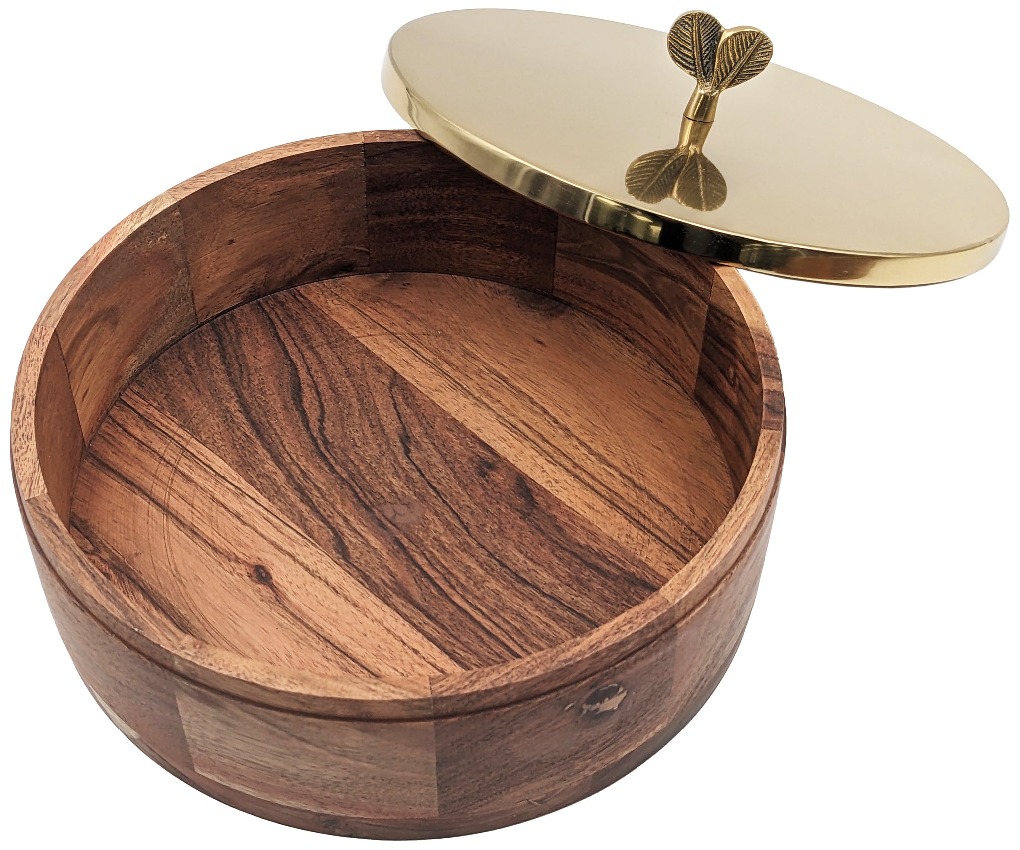 - DECORATIVE ROTI BOX - The round box measures 9.2-inches wide and 3.1-inches tall (not including the lid handle), and is made of premium Acacia wood. The bottom has soft pads that prevent it from scratching surfaces.